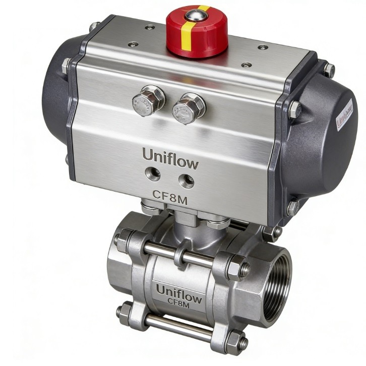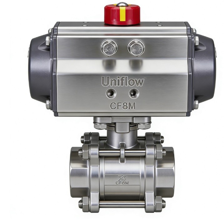 The 3-piece pneumatic ball valve is a high-performance automated solution for industrial flow control. Its "3-piece" body features a center section and two end caps, allowing for easy in-line maintenance without disturbing the pipework.