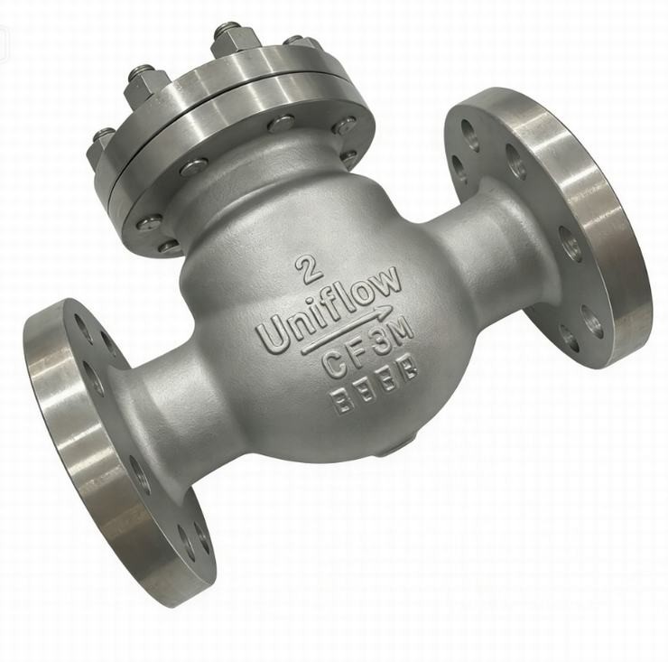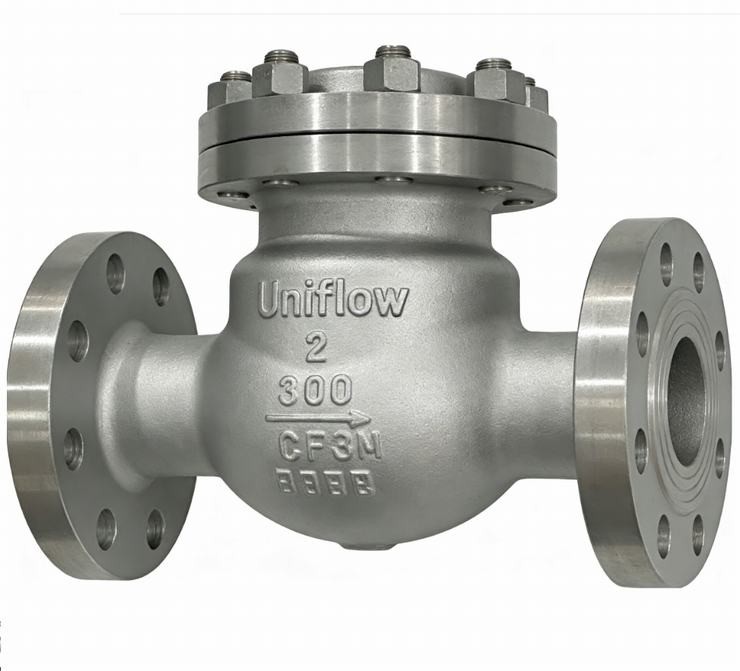 The ASTM A351 CF8 swing check valve is a robust industrial solution designed to prevent backflow in high-pressure piping systems. Made from cast 304 stainless steel, it offers excellent corrosion resistance and durability for water, oil, and gas applications. The Class 300 rating ensures performance under significant thermal and mechanical stress.