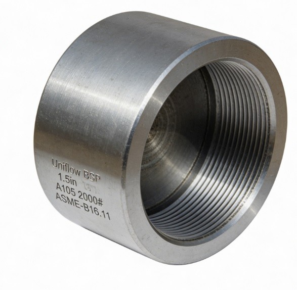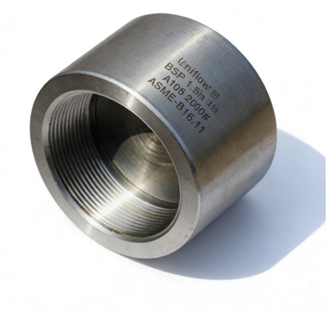 The ASME B16.11 A105 2000# NPT Threaded Cap is a heavy-duty forged fitting used to permanently or temporarily seal the end of a high-pressure pipe. Forged from ASTM A105 carbon steel, it features precision internal NPT threads for a secure, leak-proof closure without welding. The 2000# class provides a robust, cost-effective solution for steam, oil, and water lines. It is essential for protecting system integrity during maintenance, pressure testing, or line termination.