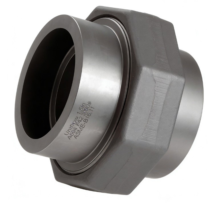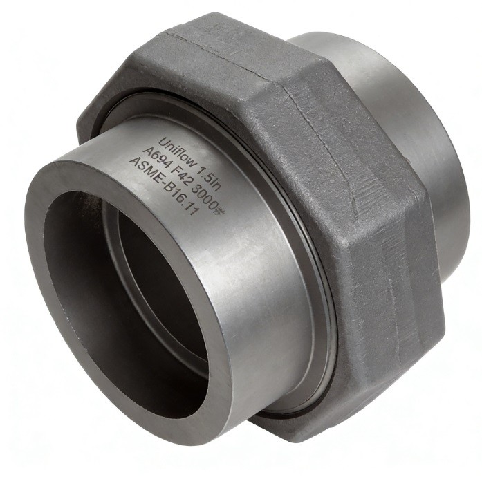 The ASME B16.11 A105 Forged Steel 3000# Socket Weld Union is a robust, three-piece coupling designed for high-pressure systems requiring frequent disassembly. Forged from ASTM A105 carbon steel, it features a precision-machined ground joint for a reliable metal-to-metal seal. The socket ends facilitate easy pipe alignment and permanent welding. Rated for 3000 PSI, it is essential for steam, oil, and gas lines, providing a maintenance-friendly alternative to flanged joints in small-bore piping.
