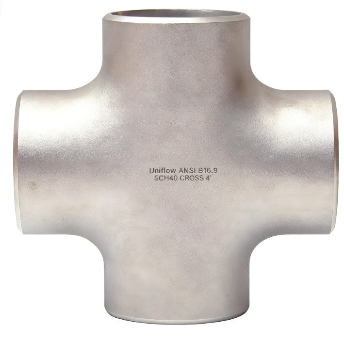 The ASME B16.9 Stainless Steel Straight Cross is a four-way fitting used to connect pipes at a single intersection, creating a 90° distribution. Forged from high-alloy stainless steel (304/316L), it ensures superior corrosion resistance and structural integrity. The STD (Standard) wall thickness provides a reliable pressure rating for industrial manifolds. Its butt-weld design eliminates leak paths and ensures a smooth internal transition, making it ideal for high-purity chemical, pharmaceutical, and cooling water systems.