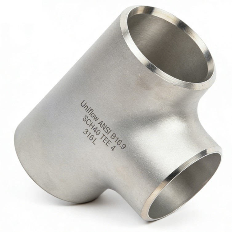 The ASME B16.9 Stainless Steel 316L Straight Tee is a high-integrity fitting used to create a 90° branch from a main pipeline. With "Straight" (Equal) geometry, the branch and header share the same diameter. Forged from low-carbon 316L, it offers exceptional resistance to chloride-induced pitting and intergranular corrosion. The SCH40 wall thickness provides a robust pressure rating, making it the preferred choice for marine, pharmaceutical, and chemical processing where leak-proof, high-purity branch connections are mandatory.