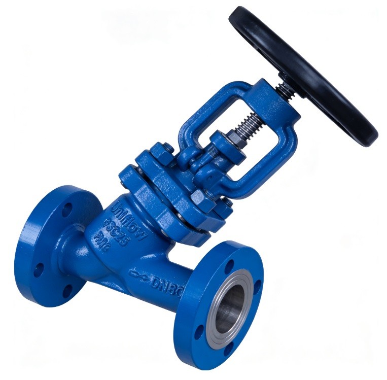 The DIN Cast Steel Y-Type Bellows Seal Globe Valve (also known as an oblique pattern valve) offers a streamlined flow path compared to standard T-pattern globe valves. It features a metallic bellows that creates a hermetic, leak-proof seal around the stem.