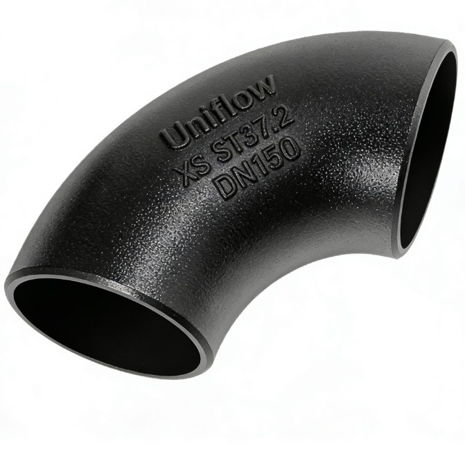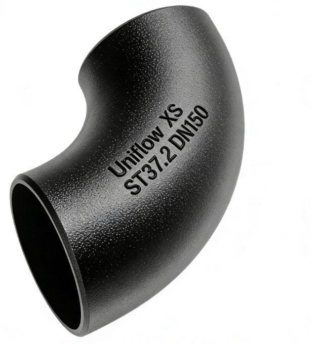 The DIN 2605 ST37.2 LR 90° Elbow (often associated with DIN 2605 rather than the 2506 flange standard) is a fundamental carbon steel component for industrial piping. Crafted from ST37.2 (S235JR), it balances affordability with high weldability for non-critical pressure applications. The Long Radius (LR) design, categorized as Bauart 3, provides a $1.5 \times$ diameter bend, ensuring a smooth transition that minimizes pressure loss and internal wear in water, oil, and gas distribution systems.