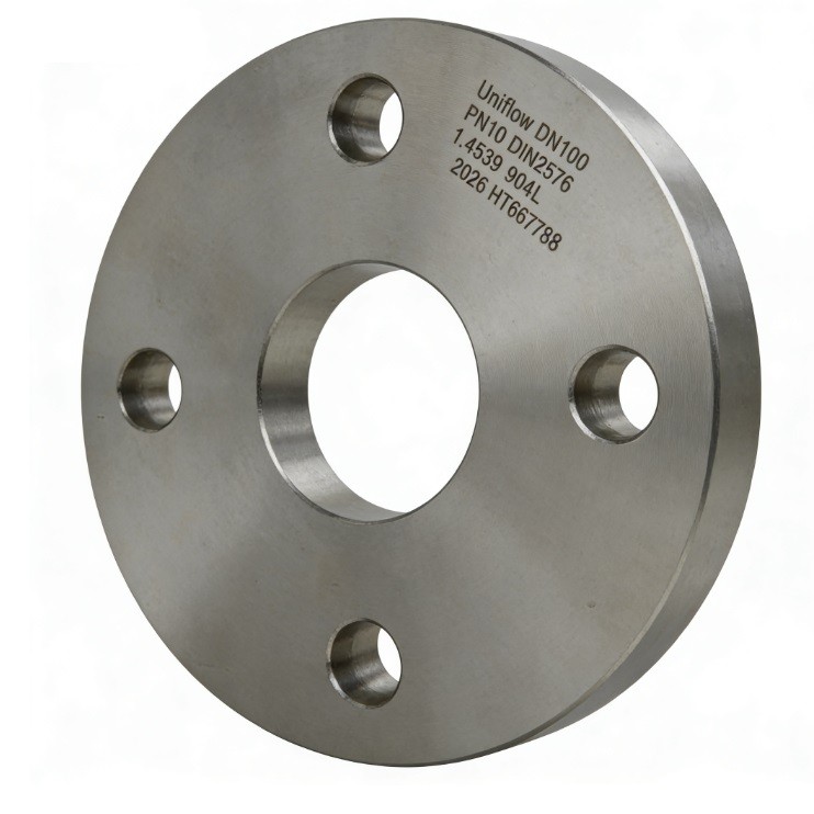 DIN 2573 (PN6) and DIN 2576 (PN10) are legacy German standards for plate flanges, now used globally for low-pressure systems. When forged from 904L (1.4539) Super-Austenitic stainless steel, these flanges provide peerless resistance to sulfuric and phosphoric acids. This high-nickel, high-molybdenum alloy prevents pitting and stress corrosion cracking in severe chemical processing environments. The plate design ensures a low-profile, weld-on connection that is both cost-effective and highly durable.