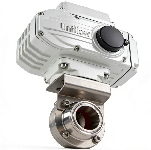 Electric Hygienic Tri-Clamp Butterfly Valves provide precise automated flow control for sanitary processes in the food, beverage, and pharma sectors. Combining a polished SS304/316L body with an electric actuator, they allow for remote operation without the need for compressed air. The Tri-Clamp ends ensure easy disassembly for cleaning, while FDA-approved seats and a Ra < 0.8um finish maintain high purity. They are ideal for systems requiring multi-positioning or smart integration.