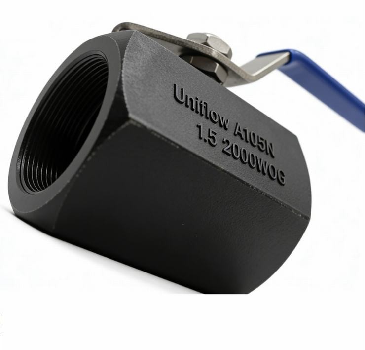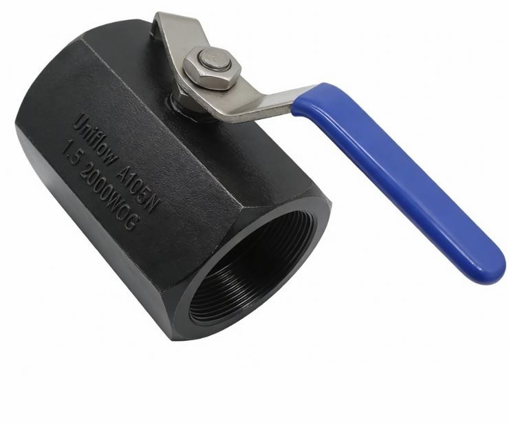 The One-Piece Hexagonal High-Pressure Ball Valve is a compact, ultra-robust valve engineered for high-stress hydraulic and industrial applications. Its One-Piece (Unibody) Hexagonal body is machined from forged carbon steel, minimizing potential leak paths and providing exceptional structural strength. Rated at 2000 WOG ($2000 \text{ PSI}$), it features a reduced bore design to maintain high pressure while offering reliable isolation. The heavy-duty switch handle ensures easy operation in high-vibration environments.