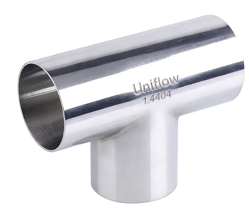 A plain end equal tee is a T-shaped fitting used to split or combine fluid flow in a sanitary piping system. "Equal" means all three openings have the same diameter. Designed for permanent butt-weld installation, it provides a seamless, crevice-free connection that prevents bacterial buildup.