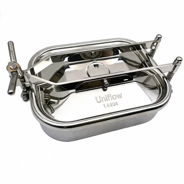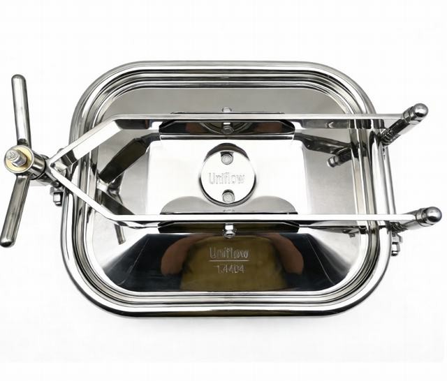Hygienic Rectangular Tank Manhole Covers are specialized access ports commonly installed on the side-walls of large storage vats and mash tuns. Their wide, horizontal profile allows for easy removal of solid residues, such as spent grain or fruit pulp. Designed for outward-opening, they feature a smooth, radius-corner frame to prevent bacterial buildup. Made from 316L Stainless Steel, they provide a robust, leak-proof seal for non-pressurized or low-pressure vessels.