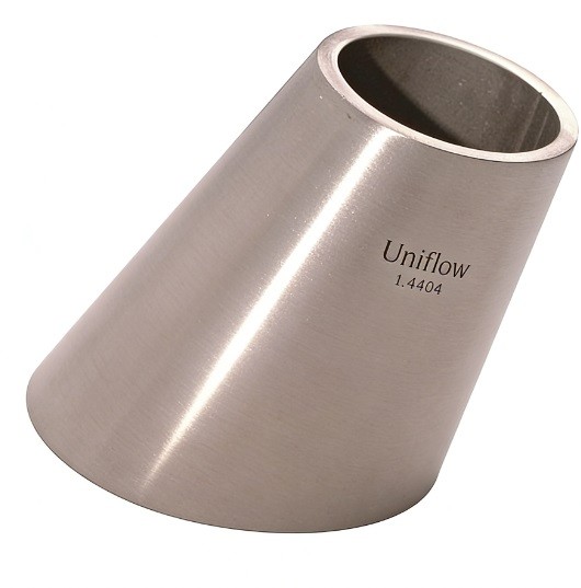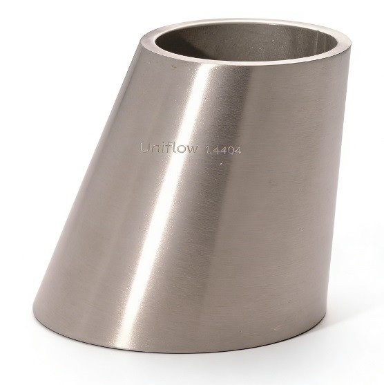 An eccentric plain end reducer features one flat side, allowing for different pipe diameters to align along a single floor or ceiling line. This design is critical for horizontal installations to ensure full drainage and prevent liquid "puddling."