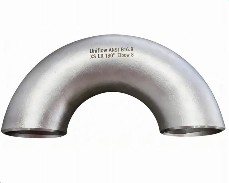 The ANSI B16.9 Stainless Steel 180° Long Radius (LR) Elbow, also known as a "Return Bend," is designed to reverse the flow of fluid in a parallel direction. The 1.5D Long Radius ensures a wider, smoother turn than short radius versions, minimizing pressure loss and mechanical stress. Manufactured from high-alloy grades like 304L or 316L, these elbows provide exceptional resistance to corrosion and scaling, making them vital for heat exchangers, heating coils, and compact piping manifolds.