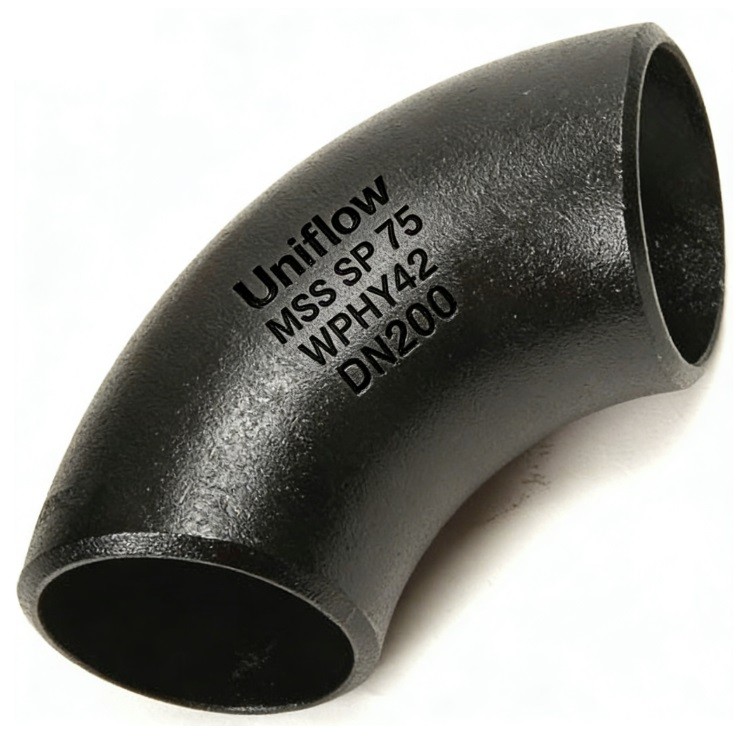 The MSS SP-75 Carbon Steel Butt Weld Elbow is a high-test fitting specifically engineered for high-pressure gas and oil transmission systems. Unlike standard ASME B16.9 fittings, it adheres to higher yield strength requirements (Grades WPHY 42 to WPHY 70). These elbows are designed to match the high-strength pipes used in cross-country pipelines, providing superior fracture toughness and weldability while maintaining a smooth Long Radius flow profile to minimize pressure drop.