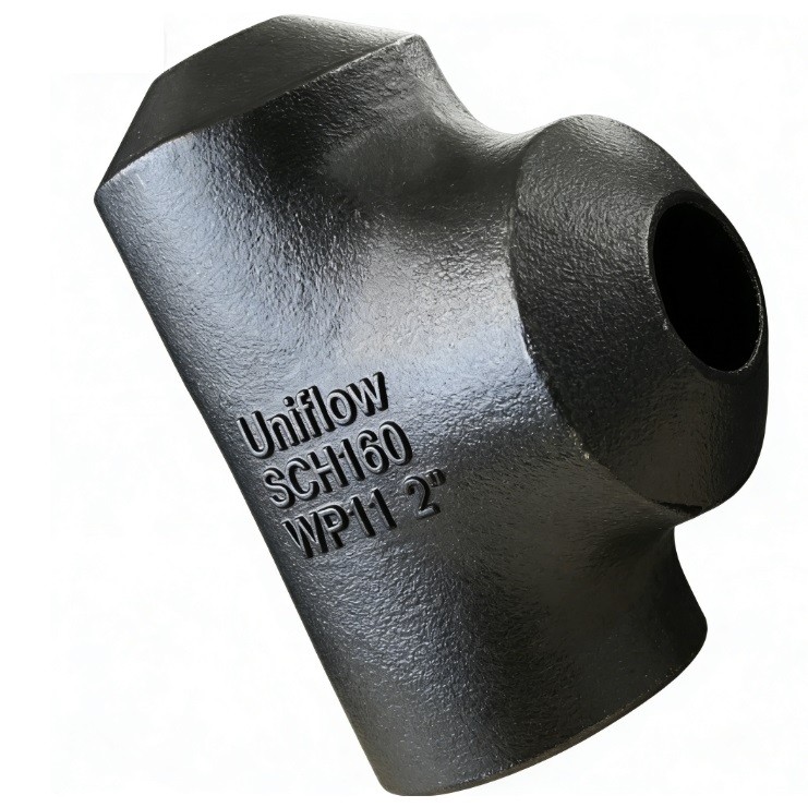 The ASTM A234 WP11 SCH160 Equal Tee is a high-pressure, low-alloy "Chrome-Moly" fitting designed for severe service. Containing 1.25% Chromium and 0.5% Molybdenum, it offers superior creep strength and heat resistance. The SCH160 wall thickness provides the heavy-duty reinforcement needed for extreme pressure loads. This Equal Tee ensures a seamless 90° branch with a uniform diameter, utilized primarily in high-pressure steam headers and refinery catalytic units.