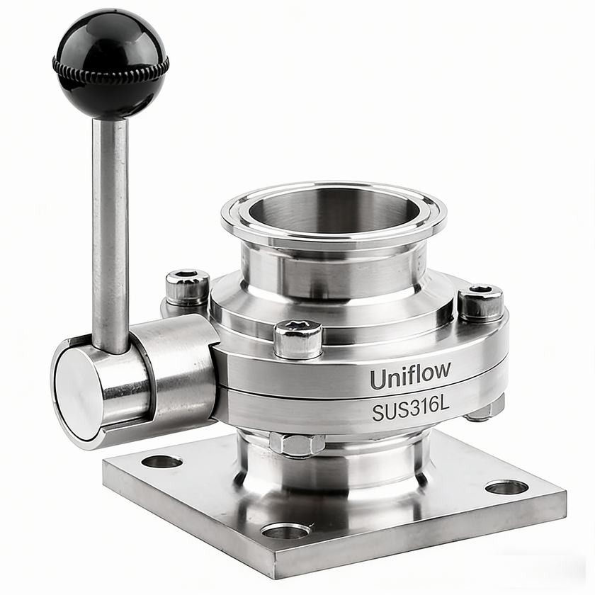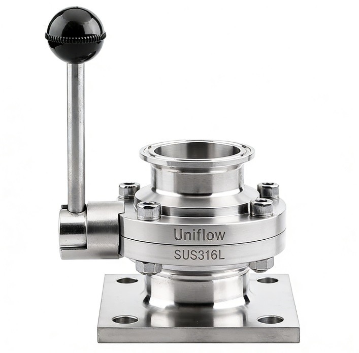Sanitary Flanged and Tri-Clamp Butterfly Valves are dual-connection components designed for versatile piping transitions. Featuring one flanged end (standard PN10/ANSI) and one Tri-Clamp end, they allow high-pressure, permanent flanged equipment to interface with quick-release sanitary lines. Made from polished SS316L, they feature FDA-approved seats and a Ra < 0.4um finish. They are perfect for tank outlets or pump connections requiring both robust mounting and easy cleaning.