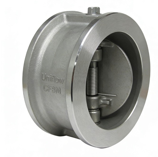 The Stainless Steel Dual Plate Wafer Type Check Valve is a space-saving, lightweight non-return valve. It features two spring-loaded plates hinged on a central pin. When flow starts, the plates open; when it stops, the springs snap them shut to prevent backflow and water hammer. Its wafer design fits between pipe flanges, making it much lighter and shorter than traditional swing check valves. Built from SS316, it is ideal for high-volume water, oil, and gas systems.