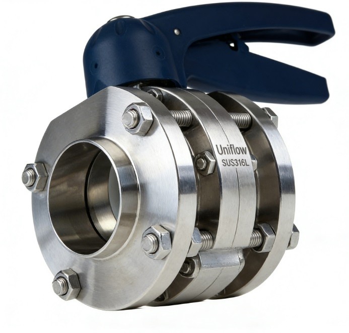 The Wafer-Type Plain End Hygienic Butterfly Valve is a space-saving, high-purity valve designed to be "sandwiched" between two pipe ends. Unlike standard welded valves, the wafer body is held in place by bolts connecting two separate plain (butt-weld) flanges. This allows the central valve body to be removed for maintenance without cutting the line. Made of SS316L, it is 3A/FDA compliant, featuring a mirror-polished finish ideal for compact pharmaceutical and food skids.